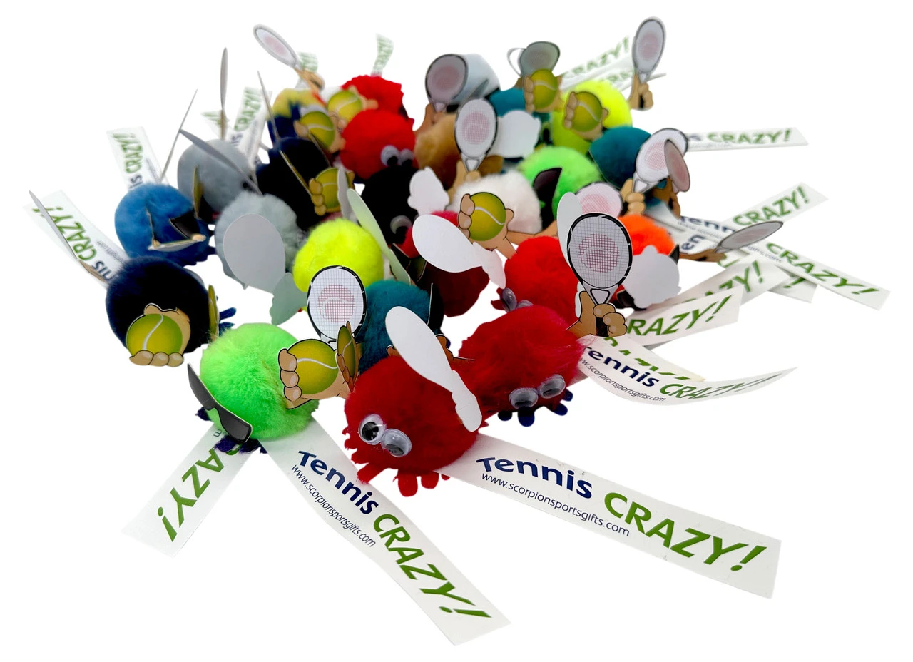 Tennis Themed Bugs are great novelty fun for kids. Small furry, self adhesive bugs with a tennis theme to stick onto surfaces.