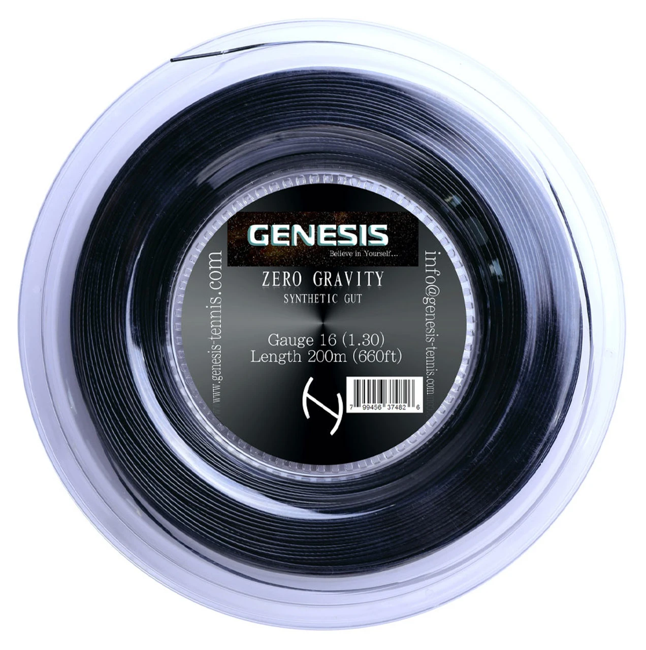 Genesis Zero Gravity 16 1.30mm 200M Reel strings approximately 18 racquets.