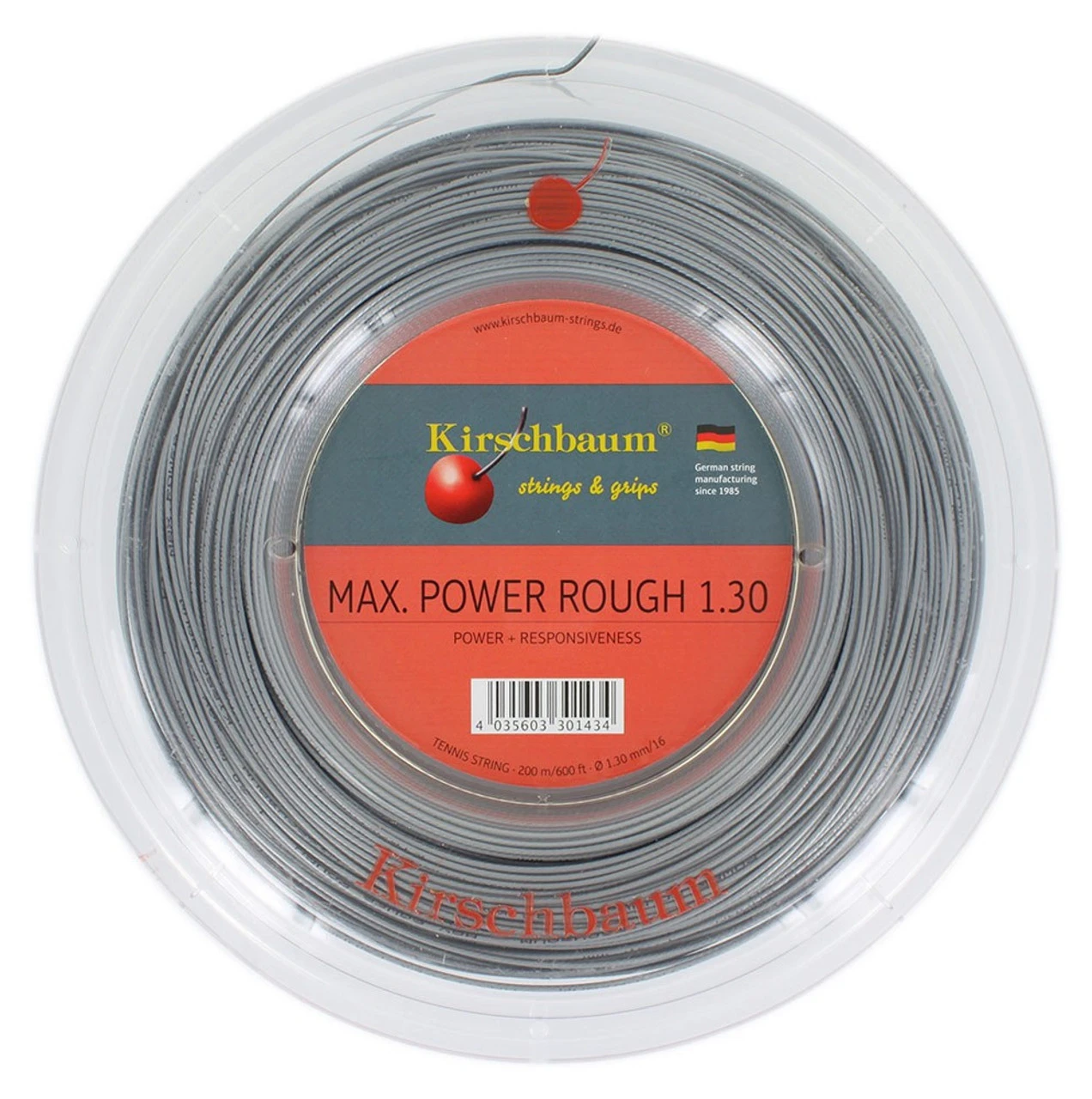 Kirschbaum Max Power Rough 16 1.30mm 200M Reel strings approximately 18 racquets.