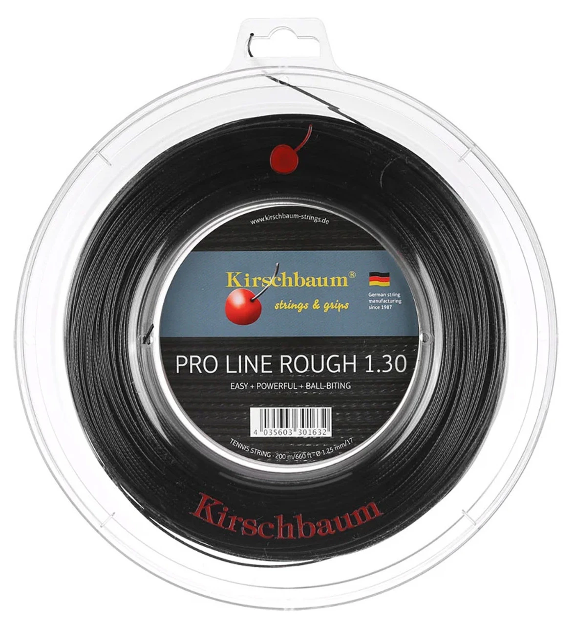Kirschbaum Pro Line Rough 16 1.30mm 200M Reel strings approximately 18 racquets.