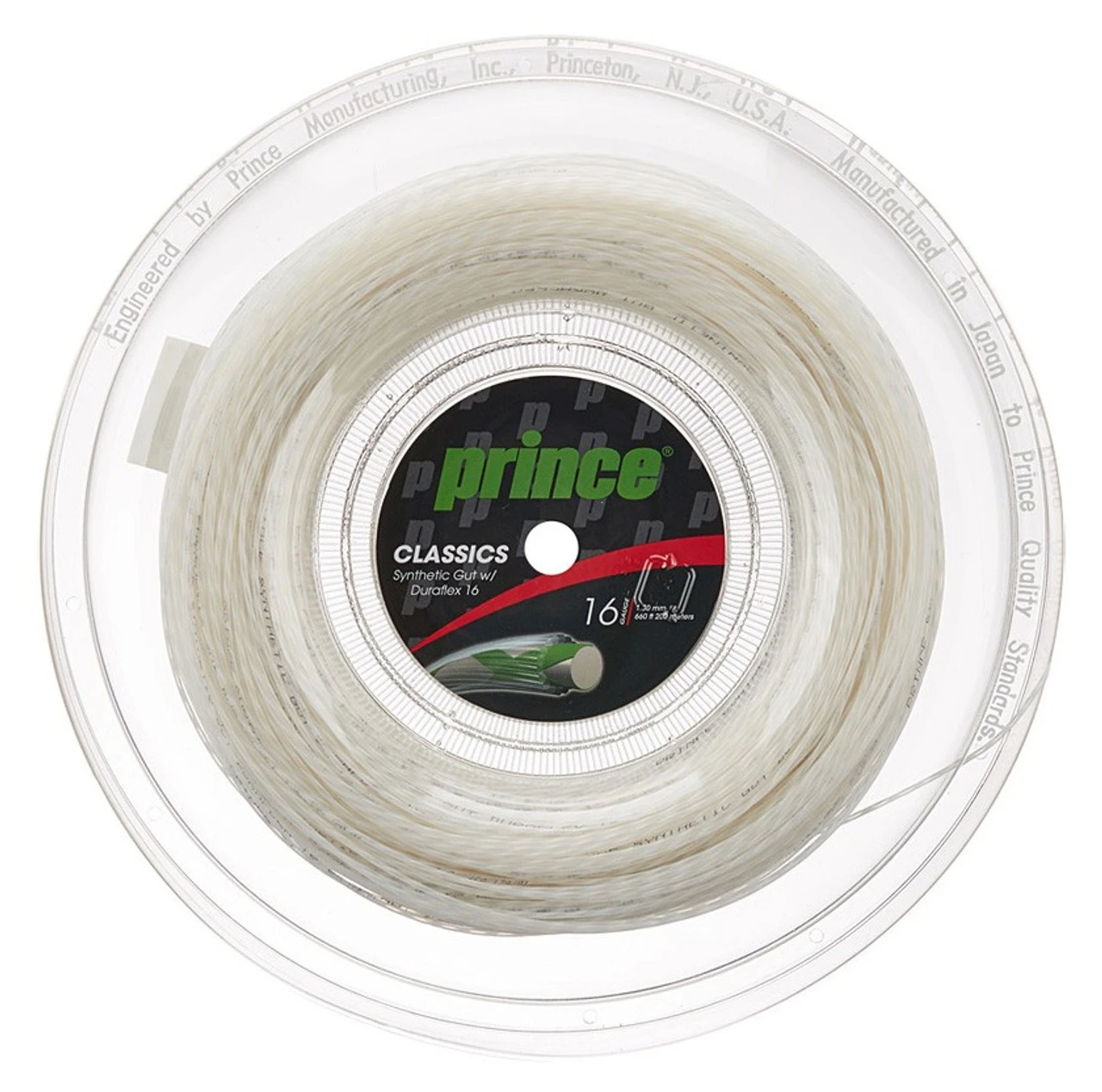Prince Synthetic Gut Duraflex 16 200M Reel strings approximately 18 racquets.