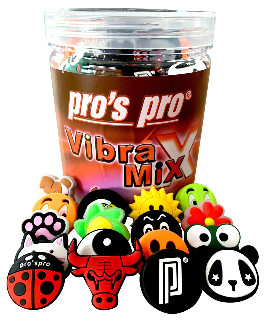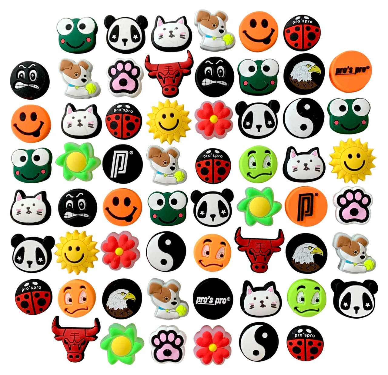 Pro’s Pro Vibra Mix String Dampener 60 Pack in assorted designs and colours. Approximately 5 of each, including bull, frog, panda, ladybird and various faces.