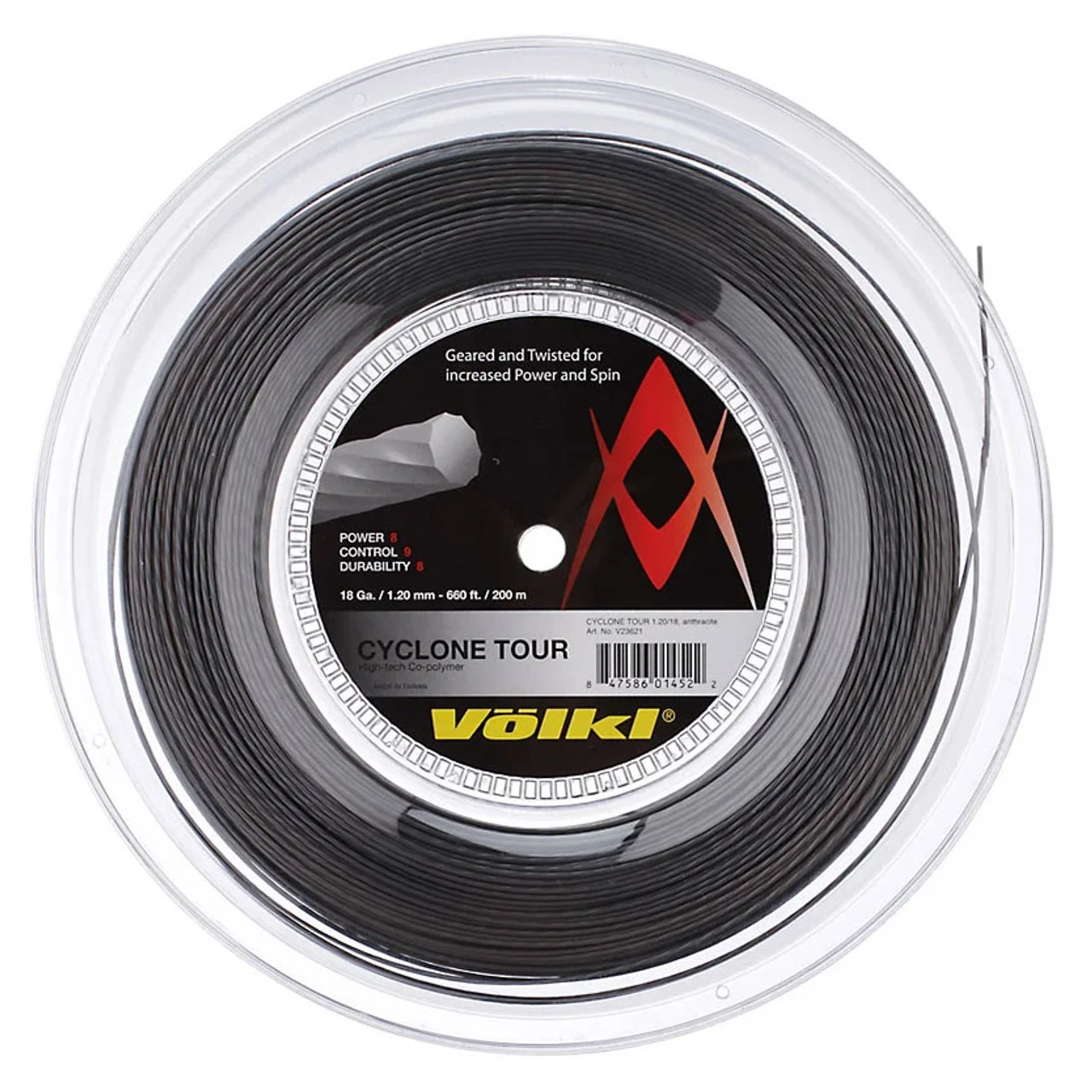Volkl Cyclone Tour 18 200M Reel strings approximately 18 racquets.